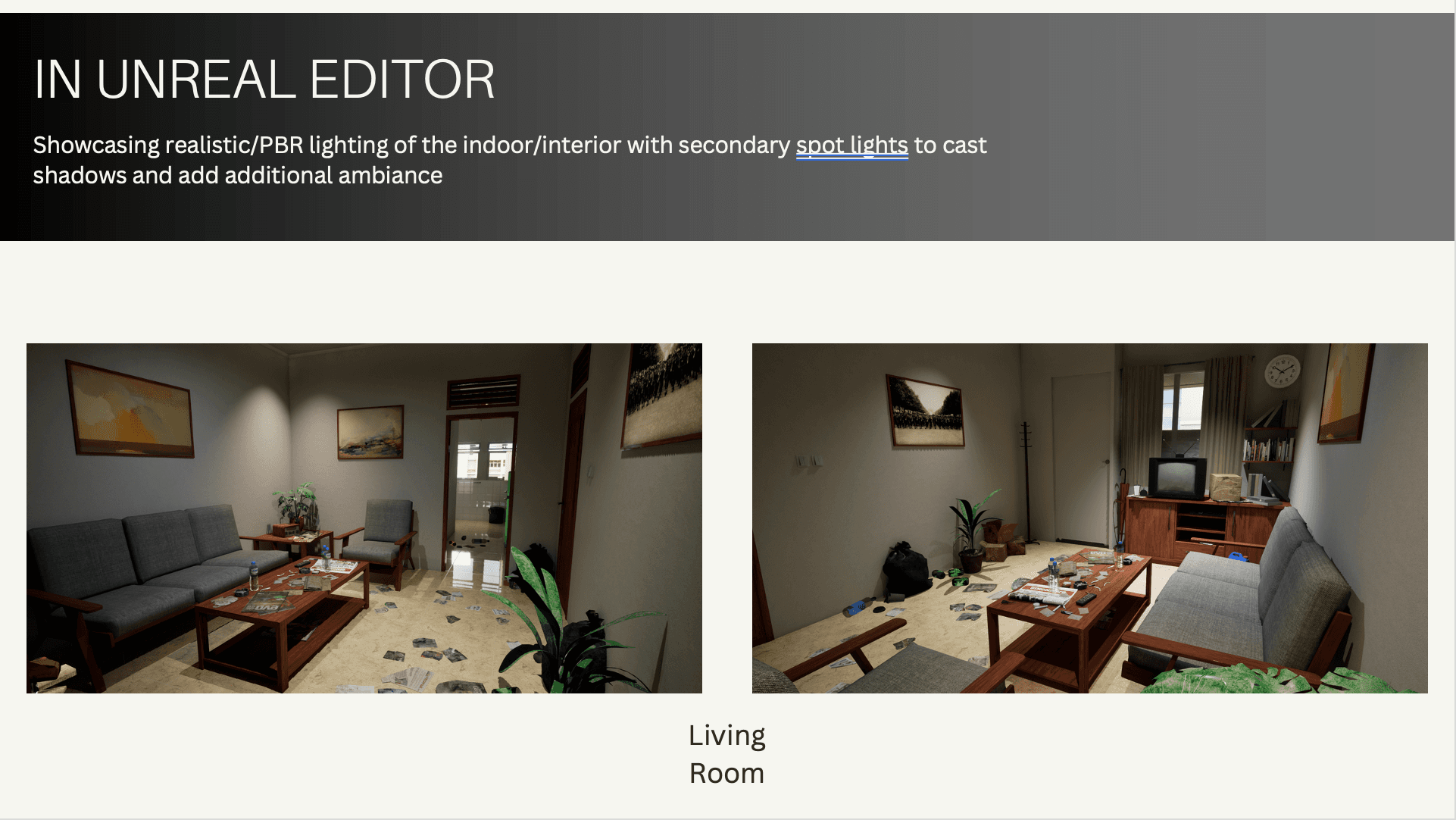 I helped design the environment and NPCs to resemble real scenarios in Singapore as closely as possible. The conversational realism, visual fidelity, and sense of spatial presence aimed to provoke a measurable emotional response.