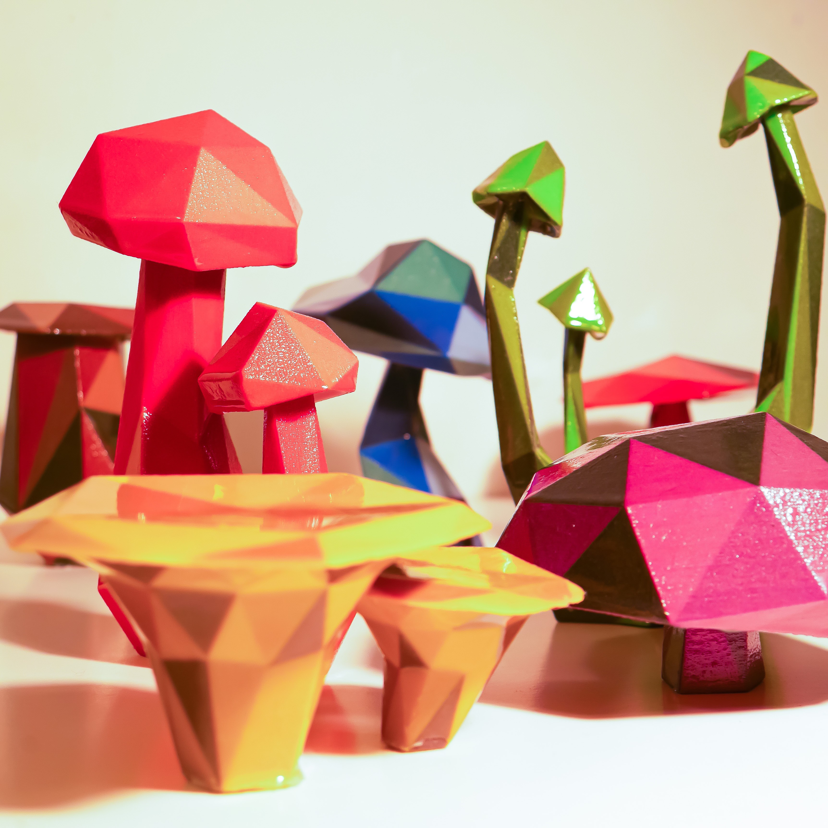 This self-initiated project emerged from my curiosity around form, texture, and material experimentation using 3D design and printing technologies. During my time at the Royal College of Art, I modelled a series of digitally sculpted mushrooms, drawing inspiration from organic structures. I explored multiple fabrication methods including resin, polyjet, and powder printing, but ultimately chose full-colour powder prints for their ability to reproduce texture and colour without post-processing.